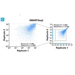 The SMART-Seq v4 Ultra Low Input RNA Kit for Sequencing is the fourth-generation of SMARTer Ultra Low kits, and our most sensitive mRNA-seq kit for single cells and ultra-low inputs. This kit takes SMART (Switching Mechanism at 5’ End of RNA Template) technology to the next level by incorporating and improving upon the SMART-Seq2 method and locked nucleic acid (LNA) technology. With these additions—referred to as ""SMARTer-Seq® chemistry""—this kit is able to outperform both the SMART-seq2 method and previous generations of SMARTer kits by identifying the greatest number of transcripts. The Clontech tradition of continuous innovation extends to this kit by providing direct cDNA synthesis from as few as 1–1,000 intact cells (or as little as 10 pg–10 ng of total RNA), high reproducibility, even gene body coverage, and excellent representation of GC-rich transcripts. The full-length cDNA libraries from this kit are compatible with both Illumina® and Ion Torrent sequencing platforms.