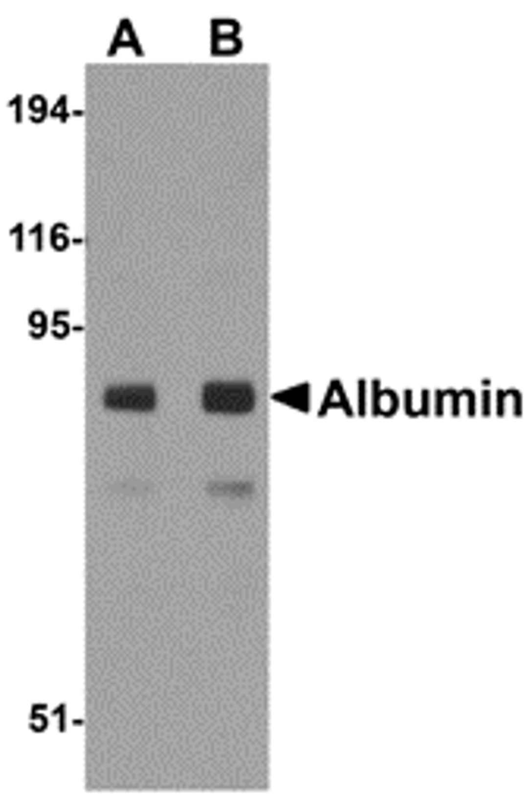 - Buffer: Albumin Antibody is supplied in PBS containing 0.02% sodium azide.