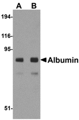 Albumin Antibody raised in Chicken validated in E, WB, IHC-P, IF in Human, Mouse, Rat.