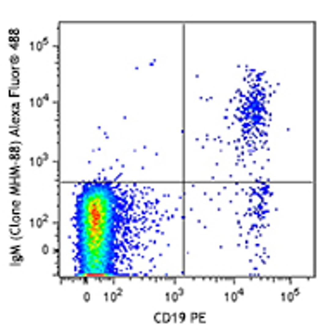 Alexa Fluor® 488 anti-human IgM; Clone: MHM-88; Reactivity: Human; Apps: FC; Size: 100 tests