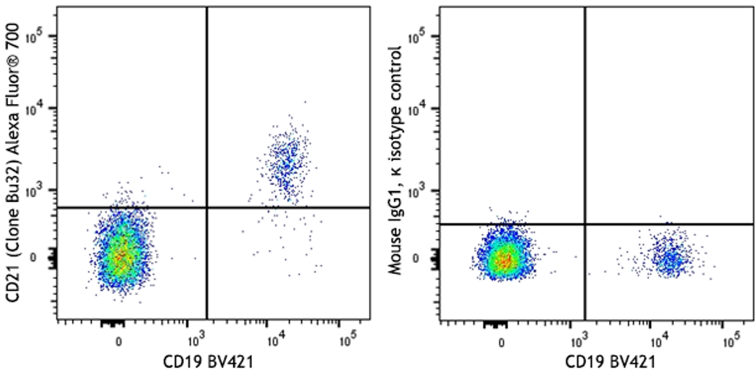 Alexa Fluor® 700 anti-human CD21; Clone: Bu32; Reactivity: Human, African Green, Baboon, Cynomolgus; Apps: FC; Size: 25 tests