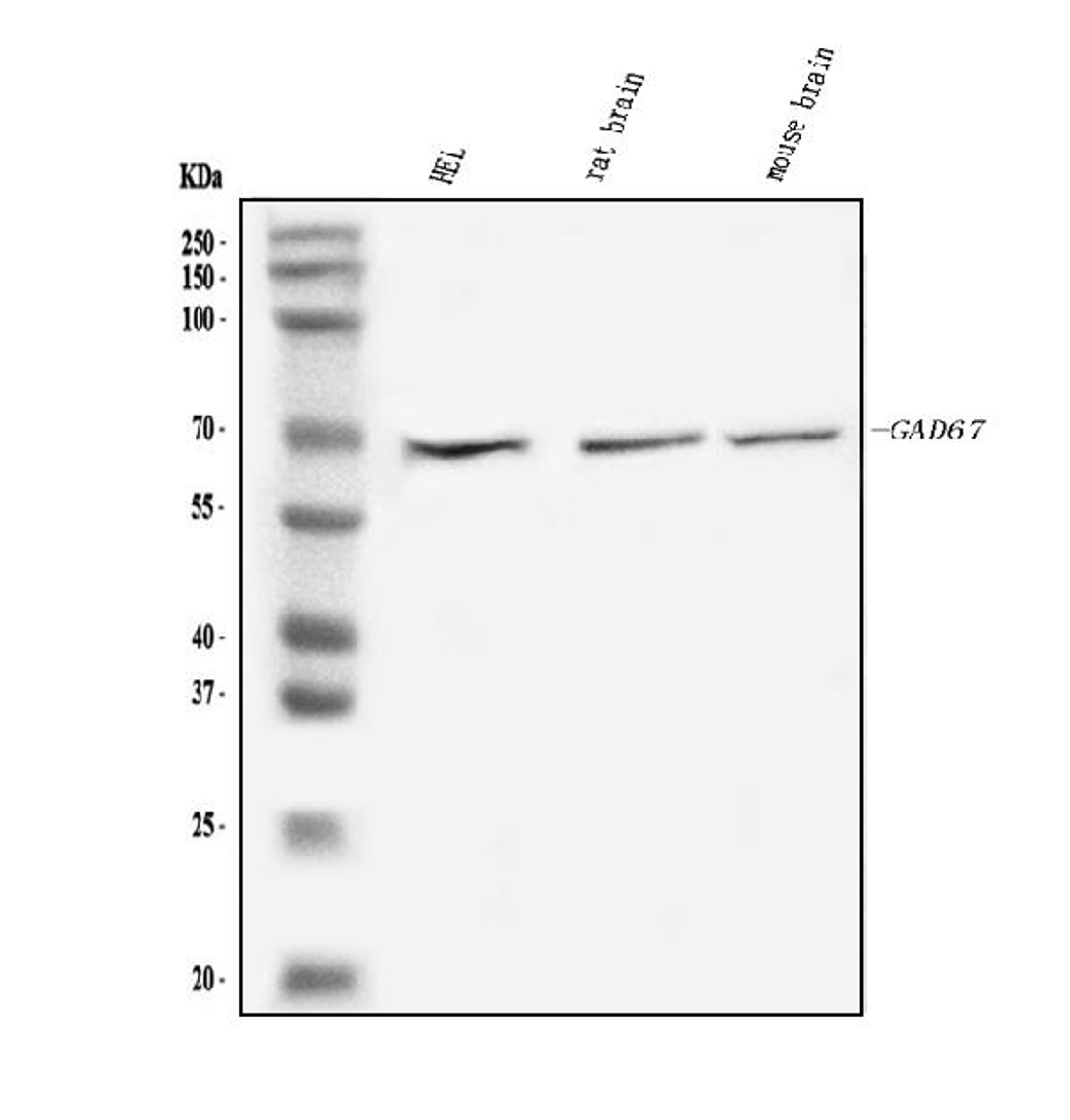 Boster Bio Anti-GAD67/GAD1 Antibody Picoband™ catalog # PB9183. Tested in WB applications. This antibody reacts with Human, Mouse, Rat.
