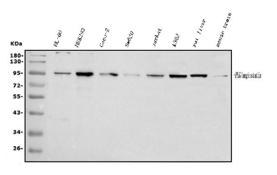 Boster Bio Anti-Plasminogen/PLG Antibody Picoband™ catalog # A03674-1. Tested in Flow Cytometry, WB applications. This antibody reacts with Human, Mouse, Rat.