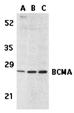 BCMA Antibody raised in Rabbit validated in E, WB, IHC-P, IF in Human.