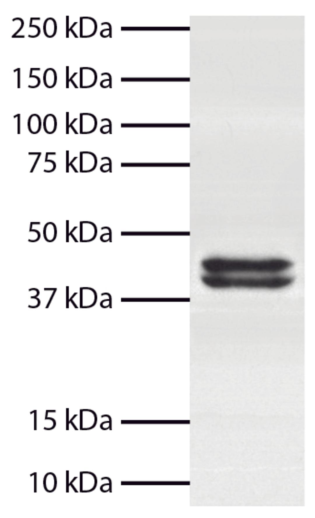 - Buffer: Supplied in a stock solution of 50% glycerol/50% PBS, pH 7.4; No preservative added