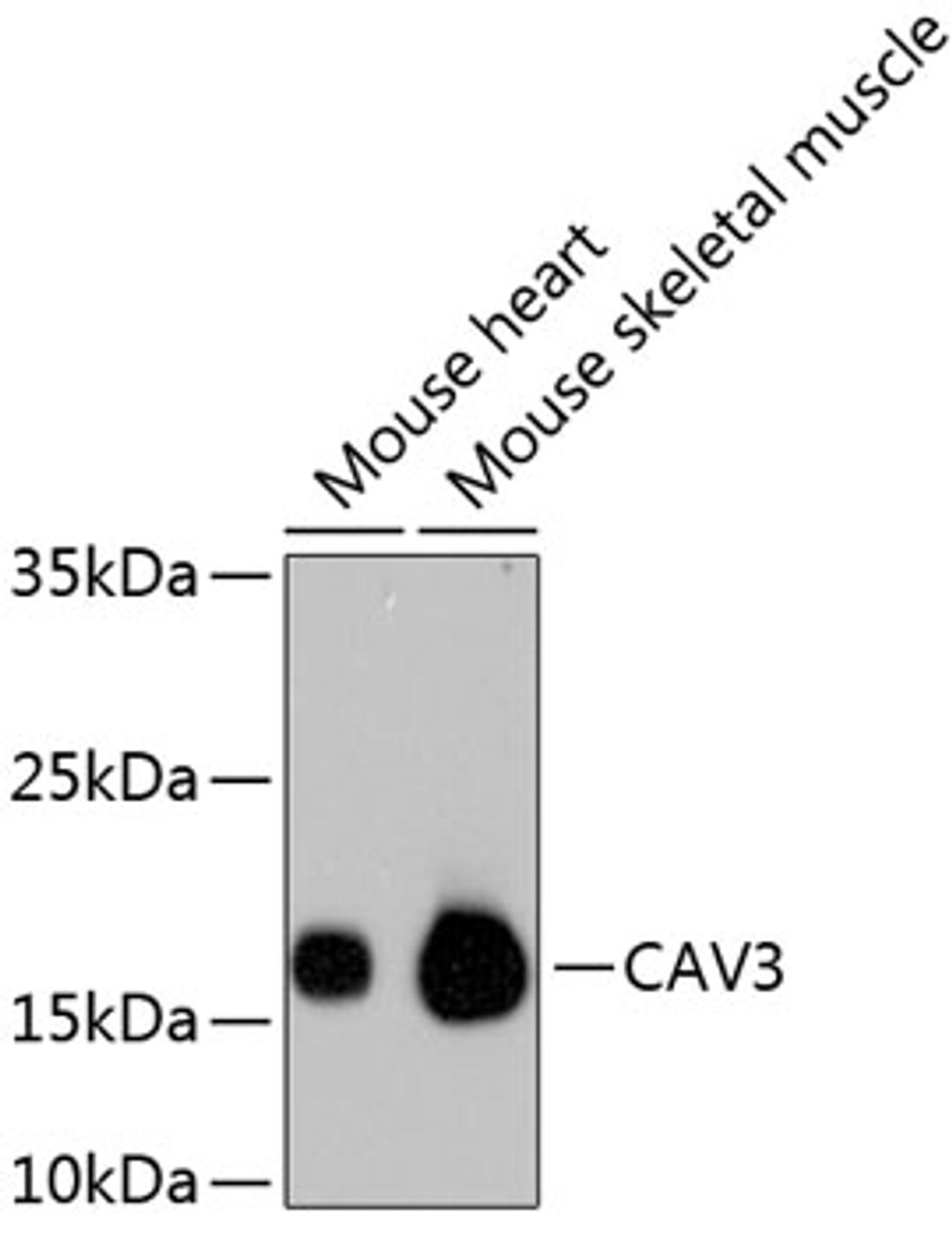 CAV3 Antibody [C3B0] raised in Rabbit validated in WB,IP in Human, Mouse, Rat.