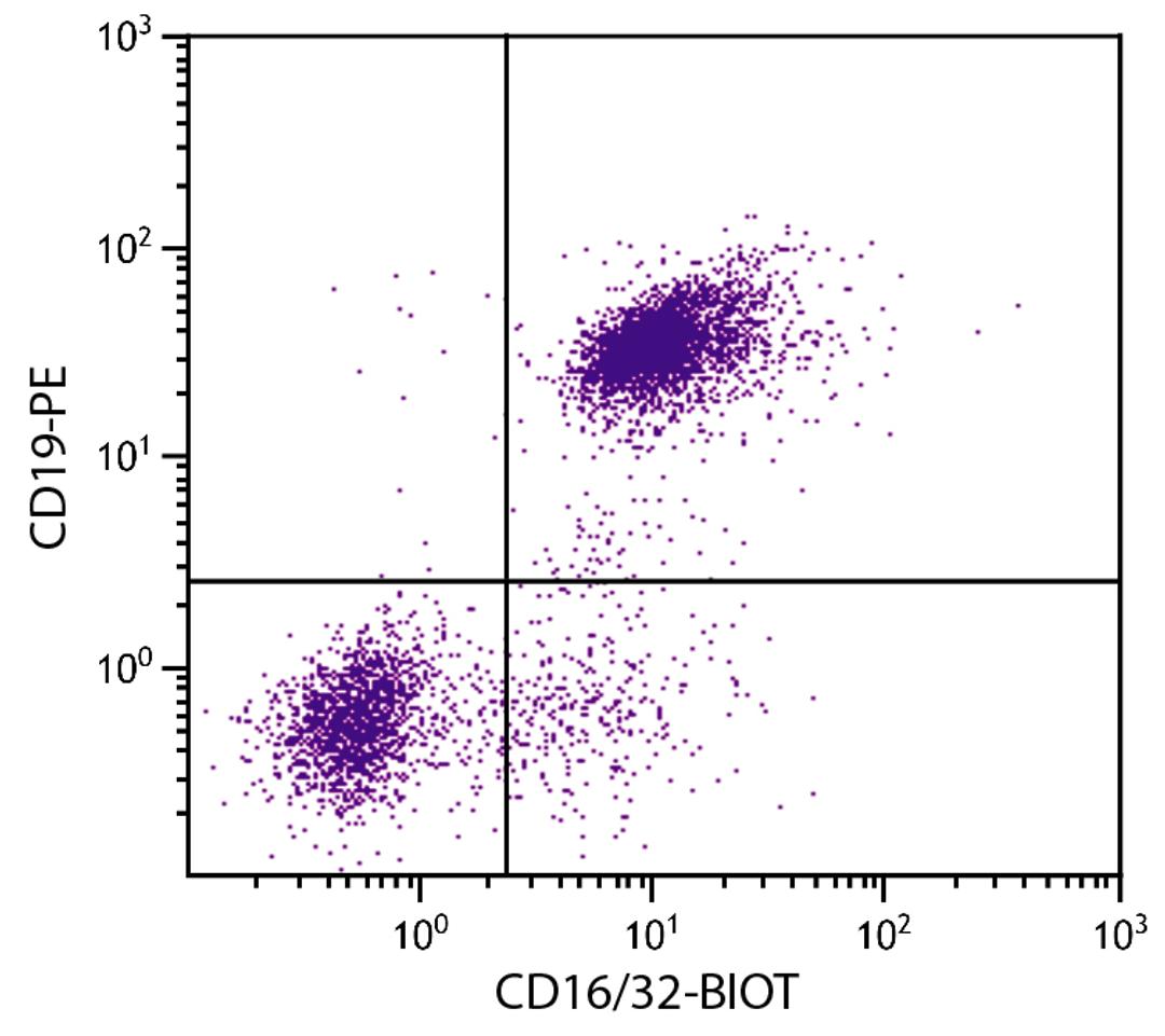 CD16/32 Antibody [93] (Biotin) raised in Rat validated in Flow in Mouse.