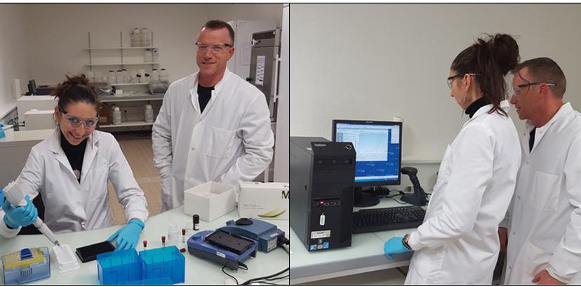 Dr. Olivier Blanck and a colleague, Sandrine Pernot, perform the multiplex assay and examine data. Image courtesy of Dr. Blanck.