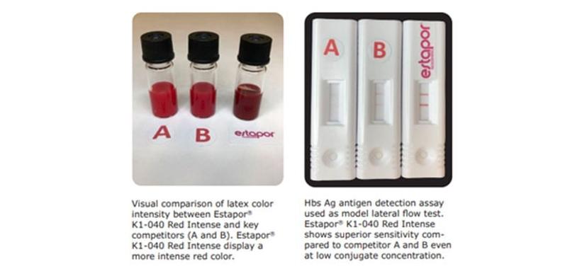 The introduction of Merck’s new Estapor® Intense Color Microspheres follows significant improvements to the company’s microsphere dyeing process and brings several advantages over both colloidal gold and traditional latex beads for lateral flow applications. "Red Intense particles are already available on the market and in the coming months, we will launch Blue and Black Intense beads as well,” shares Dr. Prost. “We chose these colors for their strong contrast against the white membrane and because they can be easily distinguished in a multiplexed assay, compared to yellow and orange, for example.”