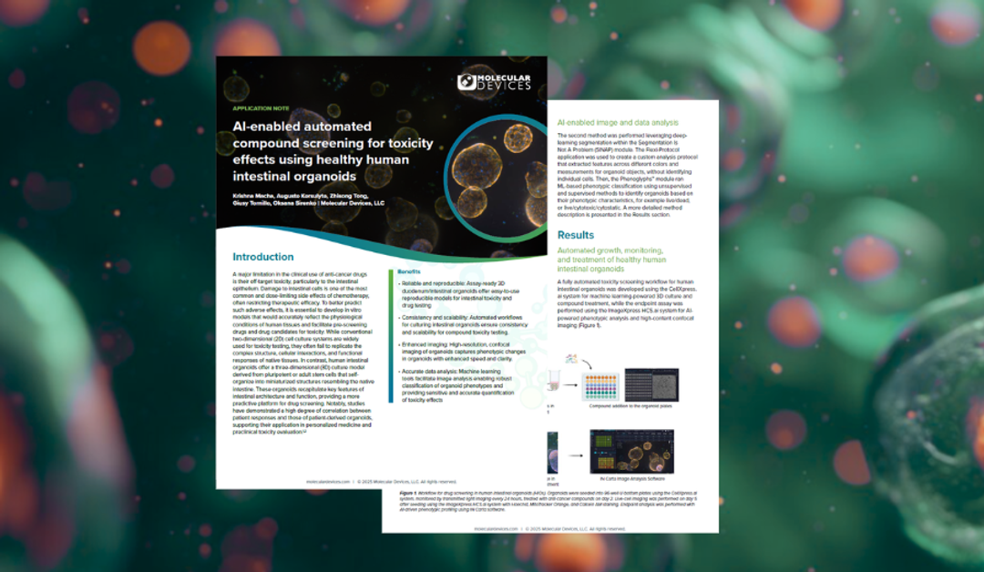 Fueled by rapid developments in advanced cell technologies and the desire to create models that closely resemble in vivo tissue, organoids have undeniably taken their rightful place at the forefront of disease modeling and drug discovery. Developed to represent many different organs of the human body, with applications expected to grow over the next few years, organoids form the foundation of innovations yet to come in precision, translational, and regenerative medicine. This eBook from Molecular Devices discusses the history, current role, and future impact of organoids in drug discovery and how you can successfully integrate organoids into your research.