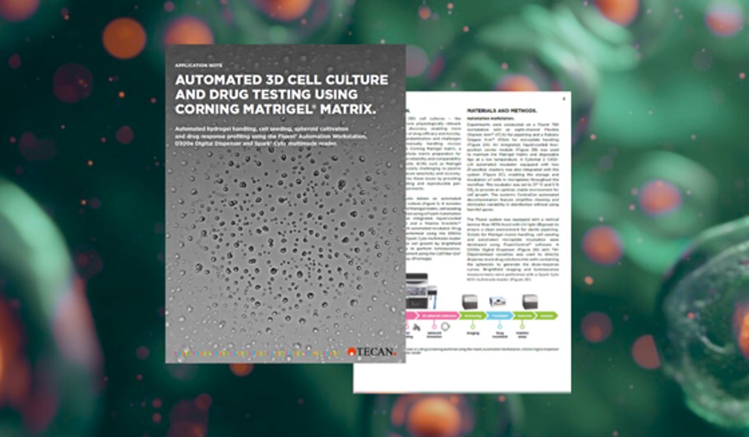 Automated hydrogel handling, cell seeding, spheroid cultivation, and drug response profiling can be achieved using the Fluent® Automation Workstation, D300e Digital Dispenser and Spark® Cyto multimode reader from Tecan.