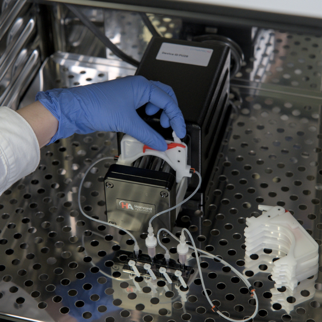 Build human in vitro disease and infection models with the DynamicOrgan System. A system that includes pumps, biochips, consumables and the freedom to keep using standard laboratory equipment. A dynamic system that will help you get greater and more meaningful insights into human biology swiftly and without capital spending.