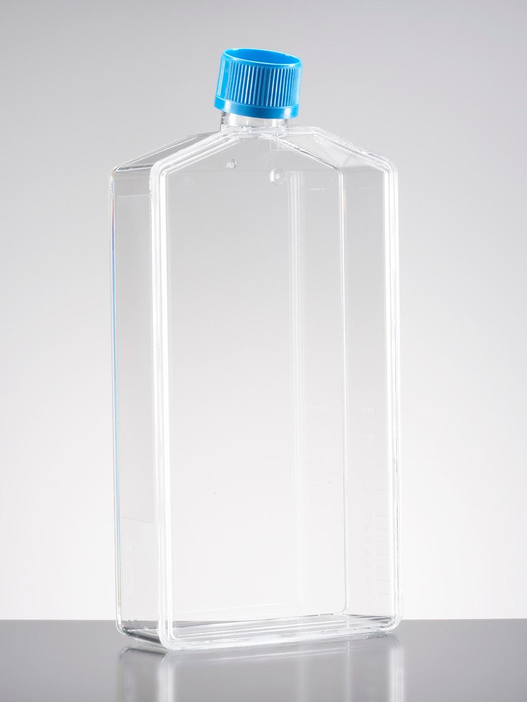 (This is suggested replacement for 3000.) Secure stacking provides stability from accidental tips or spills, and protection against contamination (canted neck flasks) Nonpyrogenic tested to less than 0.1 EU/ mL Volumetric graduations and writing patch Growth area and volume are nominal