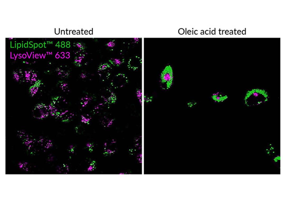 LipidSpot™ stains are fluorescent dyes that rapidly stain lipid droplets in live or fixed cells, with no wash step and minimal background.