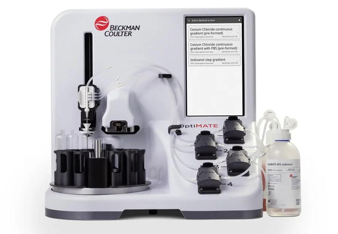 The OptiMATE Gradient Maker simplifies the laborious and error-prone density gradient ultracentrifugation (DGUC) process into an easy-to-maintain operation by automating nearly all pre-centrifuge steps, including gradient preparation, accurate dispensing, and tube sealing, significantly reducing run times without sacrificing purity or yield.