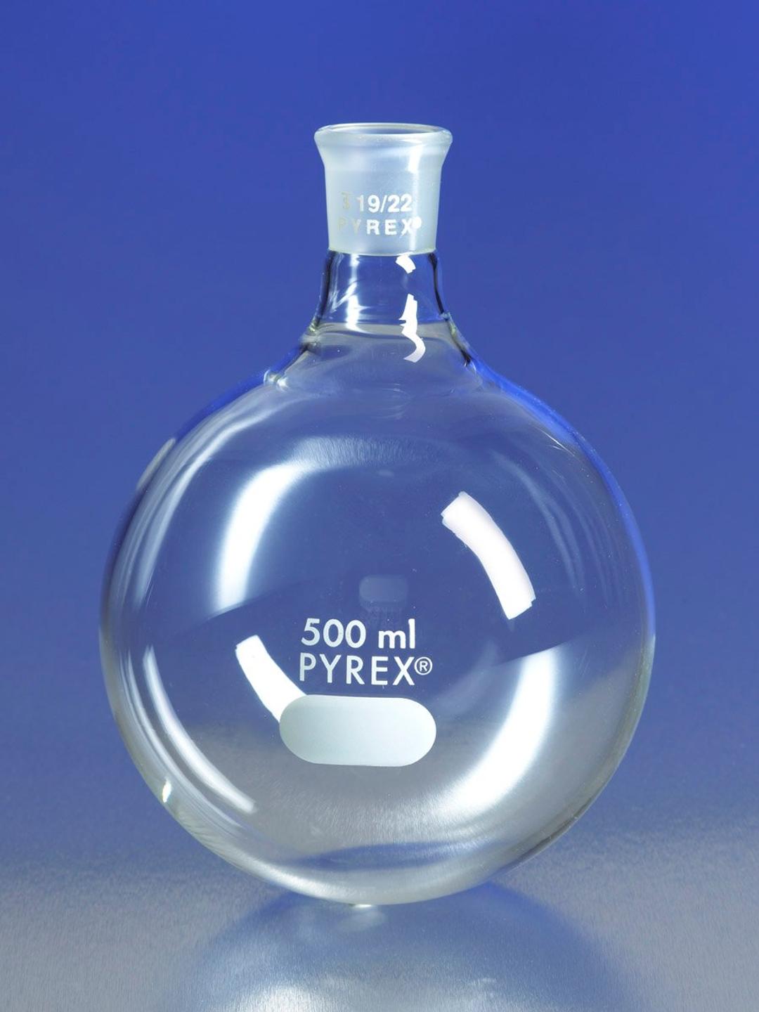 PYREX® 250 mL Short Neck Boiling Flask, Round Bottom, 14/20 Standard Taper Joint