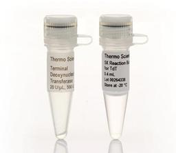Thermo Scientific Terminal Deoxynucleotidyl Transferase (TdT) is a template-independent DNA polymerase that catalyzes the repetitive addition of deoxyribonucleotides to the 3'-OH of oligodeoxyribonucleotides and single-stranded and double-stranded DNA.