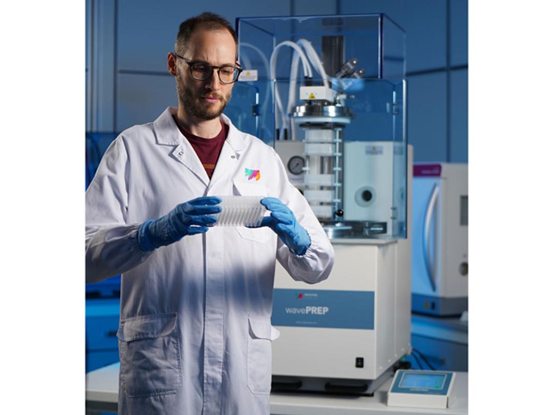 wavePREP is an efficient, rapid, and safe tool for the post-processing step in the oligos production. Its process combines cleavage and deprotection into a single step, ensuring both a superior workflow and product yields by removing the evaporation phase.