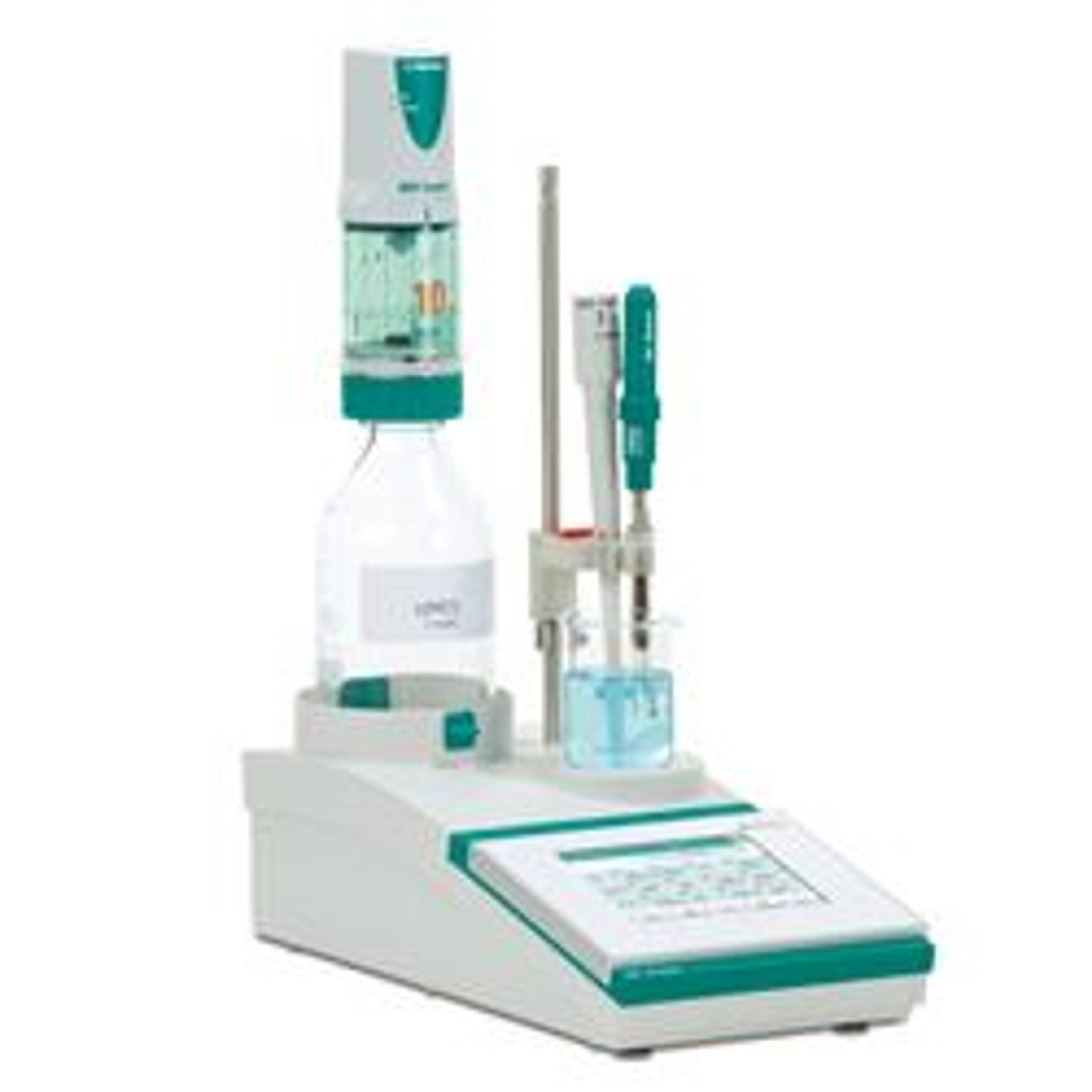 Buret, stirrer, dosing system and control module are in a single unit.