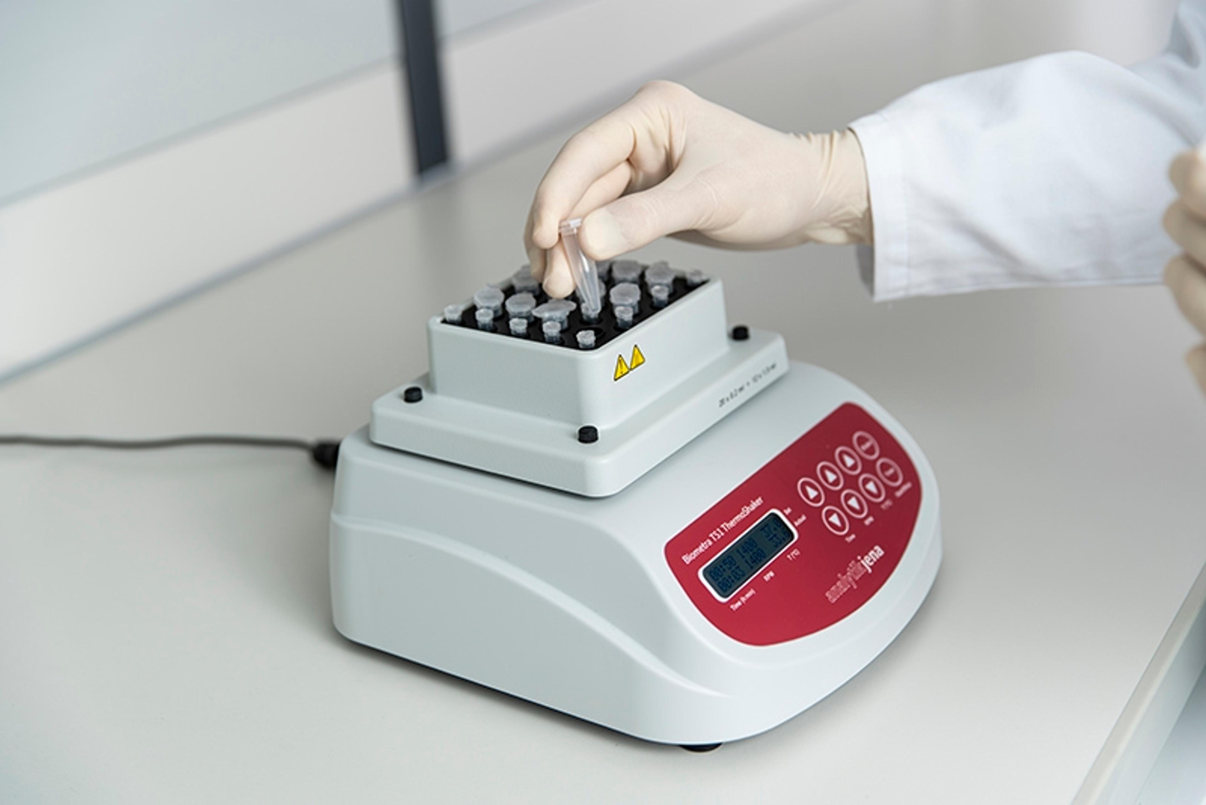 The smooth-running, compact thermomixer can incubate samples up to 2 ml in exchangeable block modules and mix them uniformly and intensively. Setting parameters is intuitive and during operation, set and actual values are displayed simultaneously.