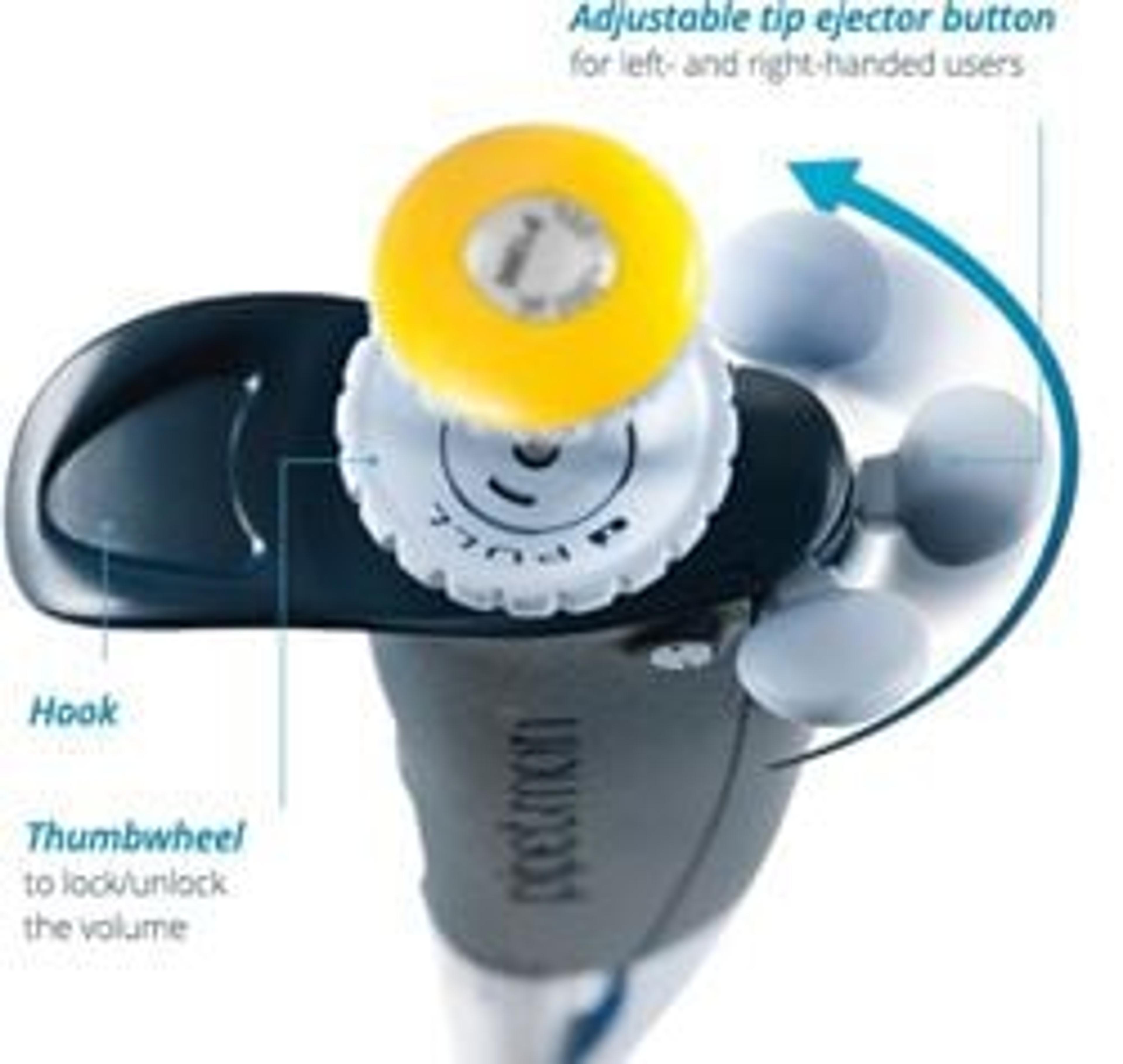 The Red Dot Award winning design of the MICROMAN E features an improved handle shape that rests comfortably in your hand, with a large push-button for easy aspiration and dispensing. The volume-locking switch allows for easy volume adjustment and minimizes the risk of accidentally changing the volume during pipetting tasks.