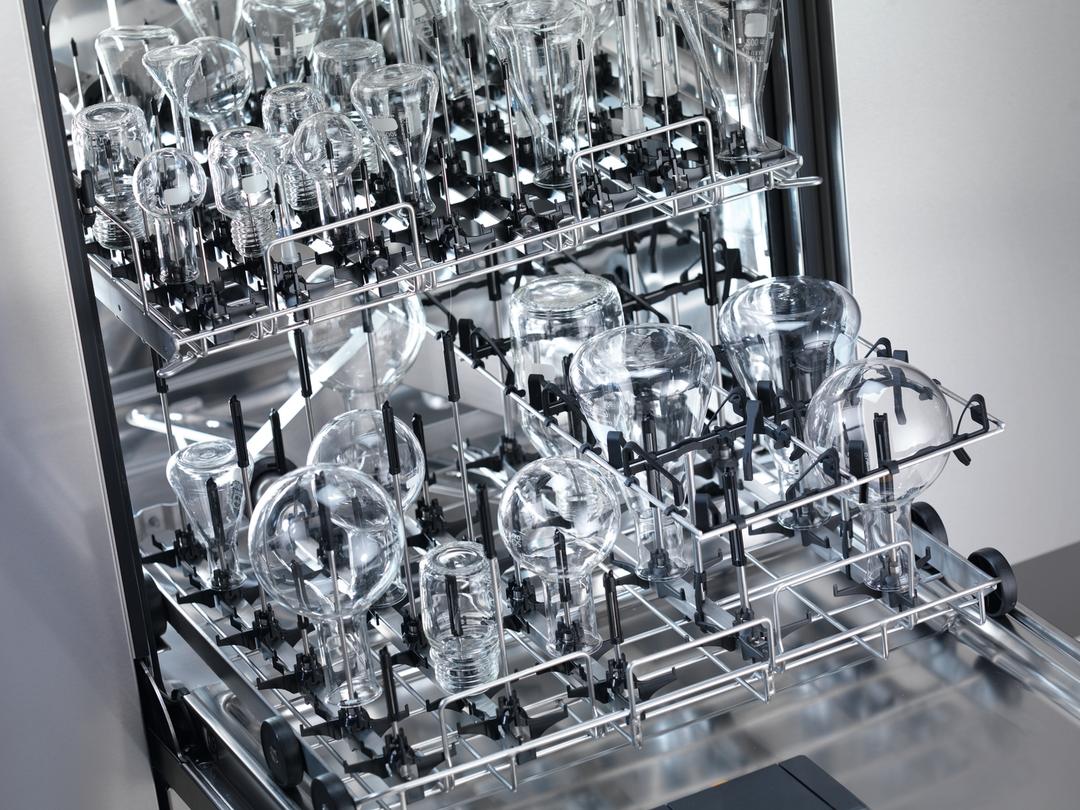 Crevice-free wash cabinet: The entirely new wash cabinet developed by Miele Professional sets new standards in hygiene. The wash cabinet is seamlessly welded using laser technology and its smooth joints protect the chamber from the built-up of dirt deposits. An additional level of hygiene is achieved by installing the heating elements outside the wash cabinet. Baskets, accessories and cleaning agents are additional and not included.